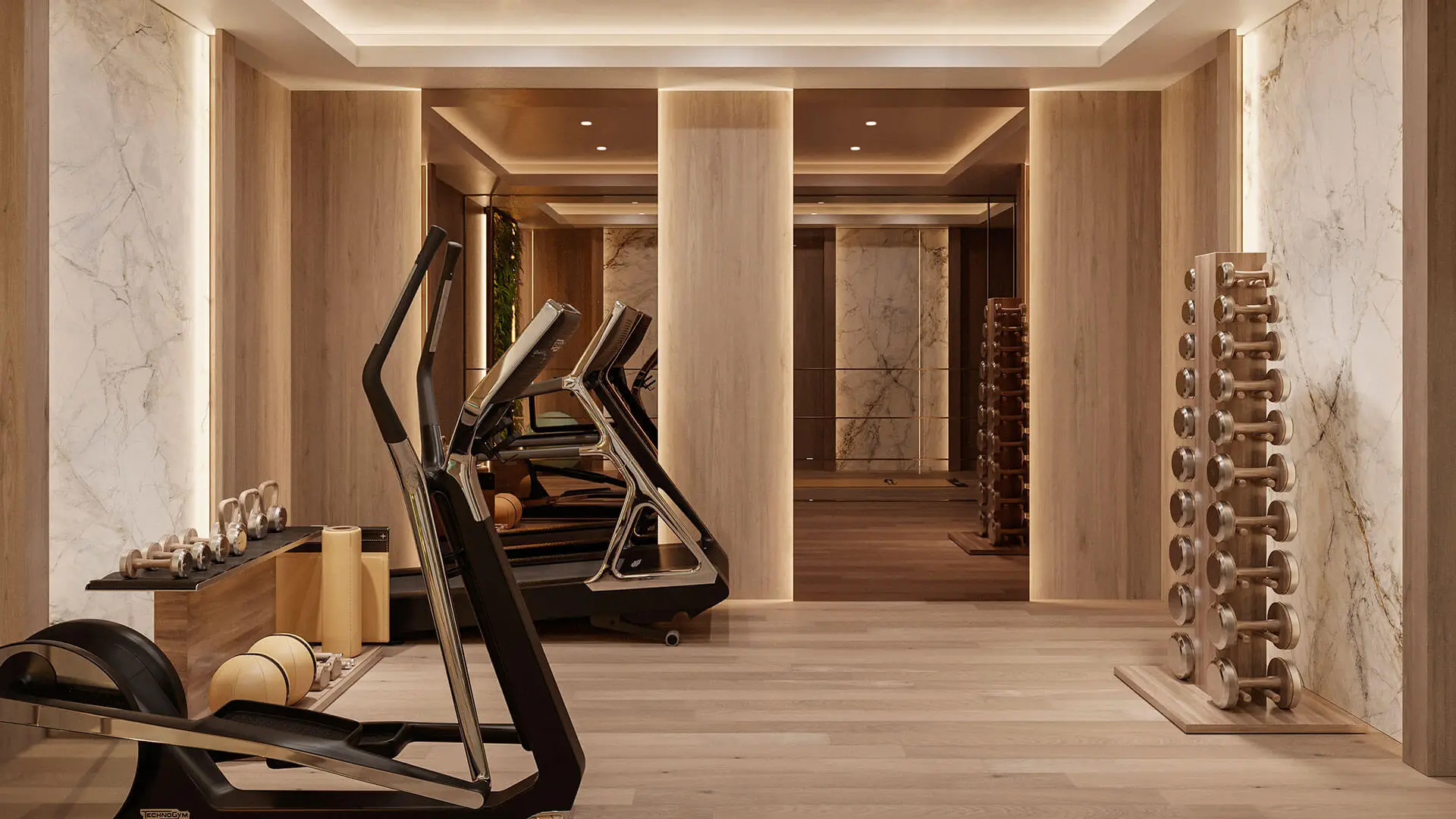Bewoners genieten van een exclusieve wellness met indoor pool, sauna, hammam, ice bath en een volledig uitgeruste gym, plus infinity pool, dakterras en aangelegde tuinen.